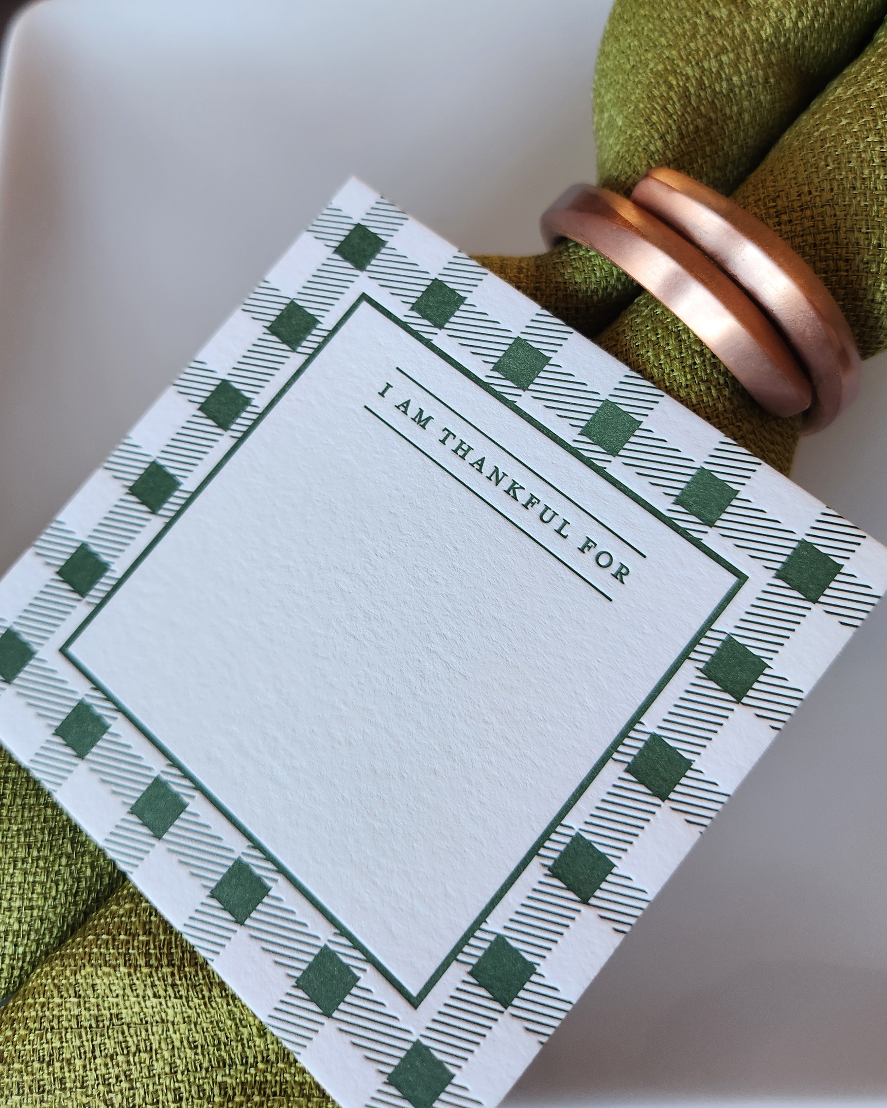 “I am Thankful For” Green Plaid Letterpress Cards | Set of 12